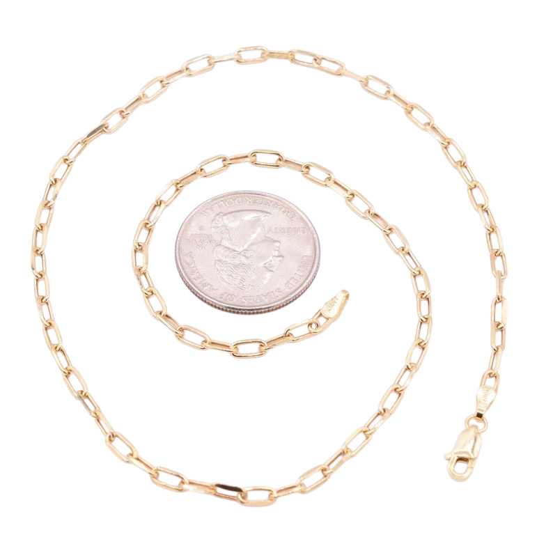 Add a modern edge to your look with our Paperclip Chain, featuring sleek, elongated links for a bold yet elegant statement. Perfect for everyday wear or layering with your favorite pieces.