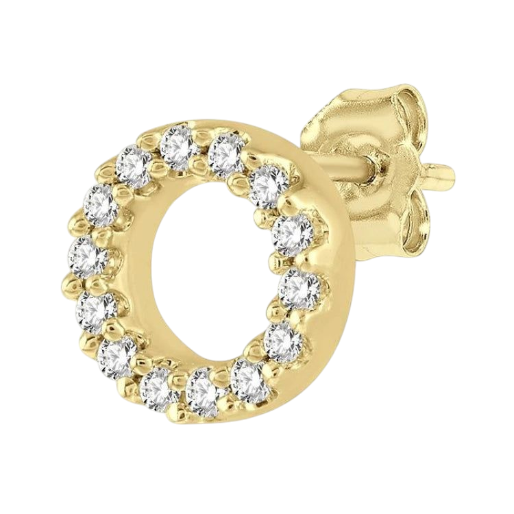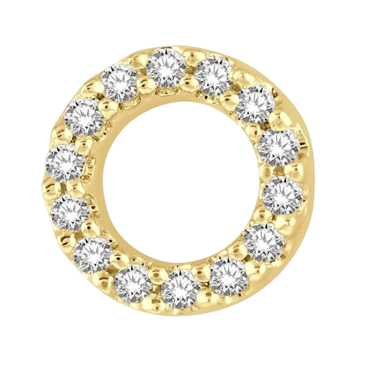 Crafted from high-quality 14k yellow gold, these earrings feature a delicate circle shape that symbolizes eternity and endless love. The circle is meticulously adorned with dazzling diamonds, carefully selected for their exceptional brilliance and sparkle.