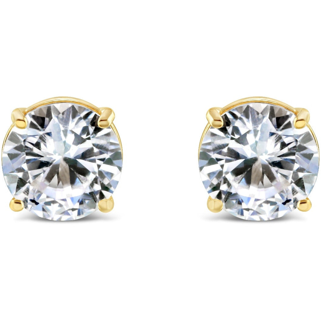 - YELLOW GOLD ROUND DIAMOND STUD EARRINGS: Round brilliant cut natural diamonds are set in a solid gold earring finding. Earrings are accompanied with 14k gold screw back earring backings.