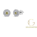 This beautifully handcrafted pendant & earring set highlights genuine sparkling round beautiful diamonds that compliment a yellow center diamond.