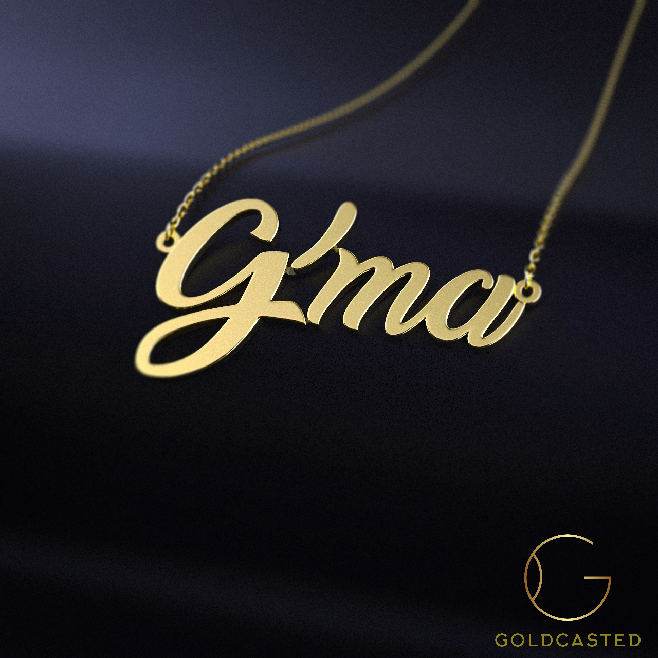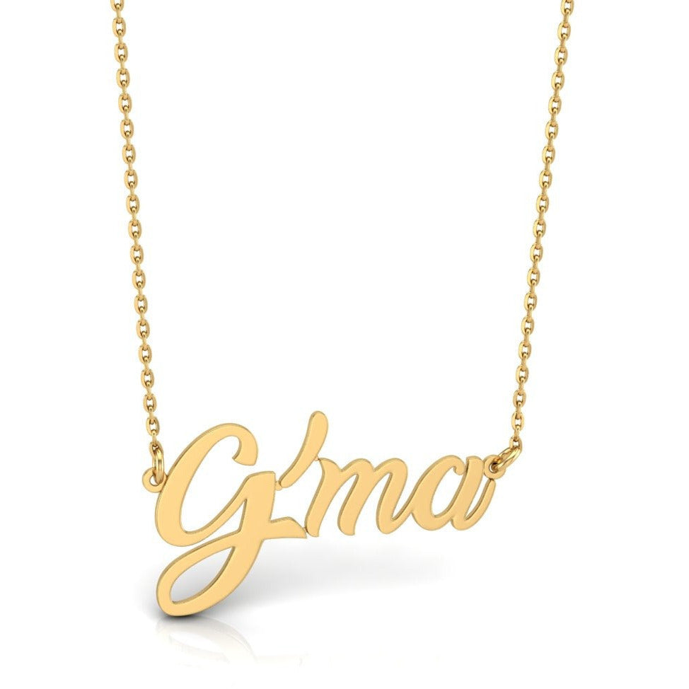 The Love For A Grandmother Is Endless, Timeless And Forever. Now You Can Celebrate Your Grandmother With This Beautiful Gold "G'Ma" Name Necklace. Carefully Designed And Made With Real 14k Solid Gold This Stunning Gift For Grandma Comes With An 18" Rolo Chain